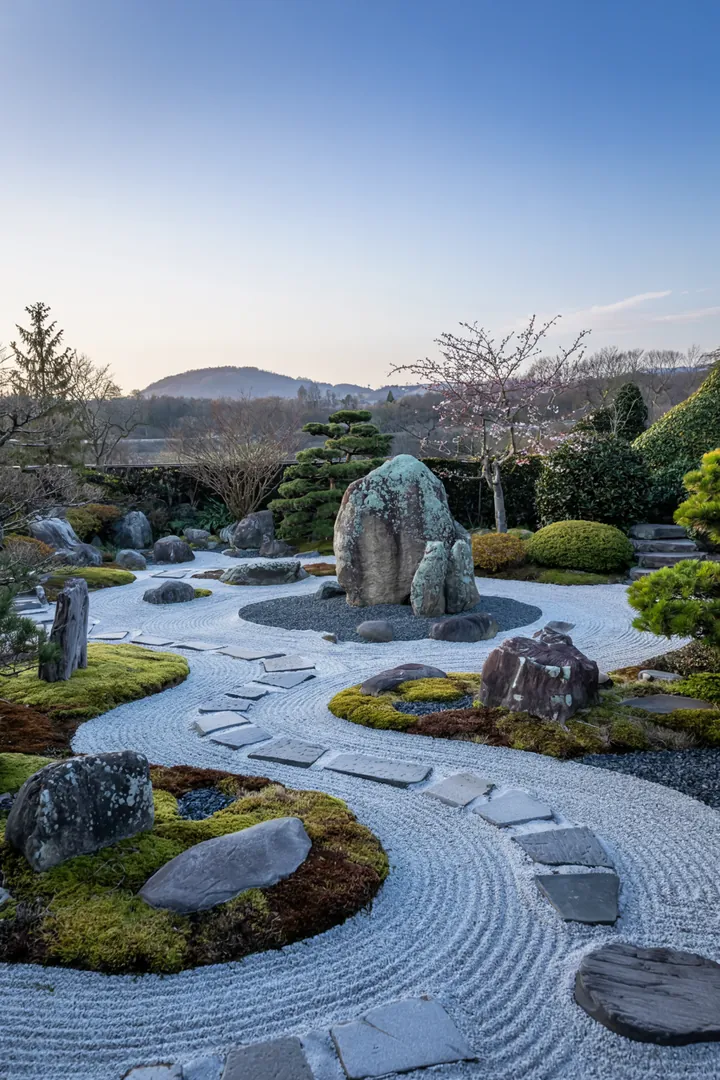 Ein japanischer Steingarten könnte das Herzstück dieses Paradieses sein, mit sorgsam platzierten Felsen, die Geschichten von Ewigkeit und Beständigkeit erzählen. Die Ruhe, die von solch einem Arrangement ausgeht, lädt zum Verweilen ein und lässt den Alltag in den Hintergrund treten.