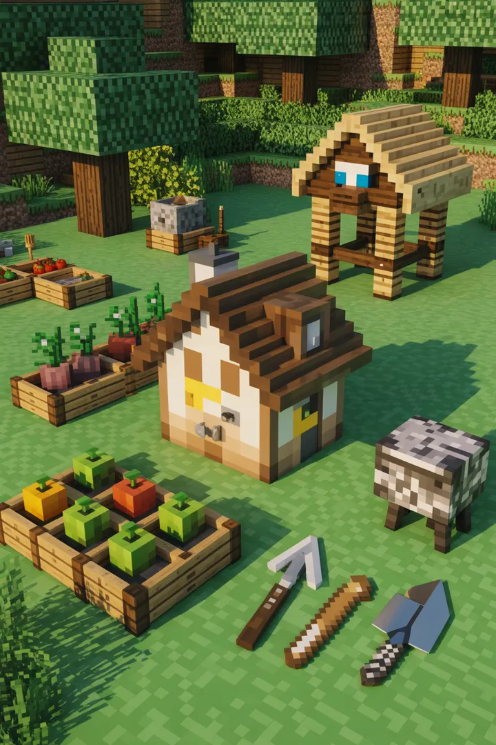 Um einen Minecraft© Bauernhof im Garten zu bauen, benötigen Sie verschiedene Materialien und Werkzeuge. Holz, Steine, Sand und Erde sind die Grundbaustoffe, während einfache Werkzeuge wie Schaufeln oder Hammer und Nägel zum Einsatz kommen können.