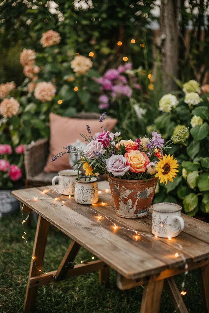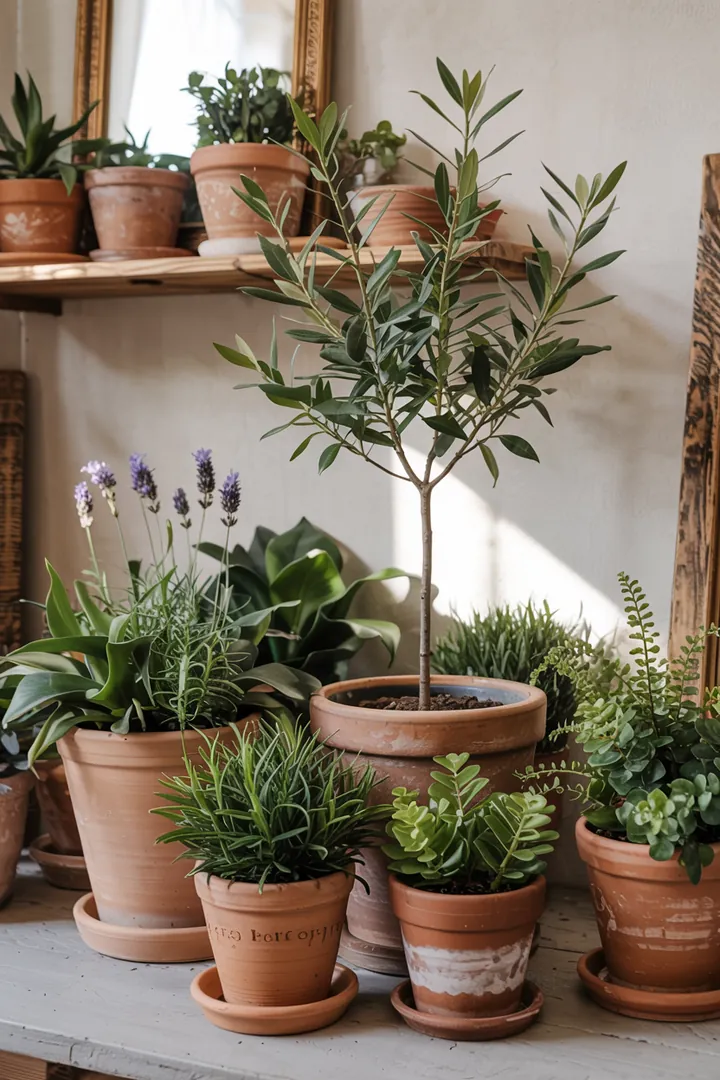 Kombinieren Sie Terrakotta Töpfe mit modernen Pflanzenständern aus Metall oder Holz, um einen spannenden Materialmix zu erzeugen. 🪵 Dies verstärkt den Boho-Look und sorgt für Abwechslung in der Dekoration. 💡