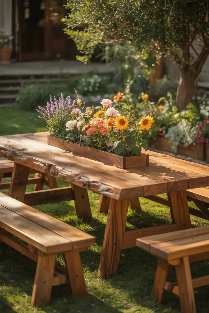 1. Der Holztisch mit Bänken – zeitlos und herzlich