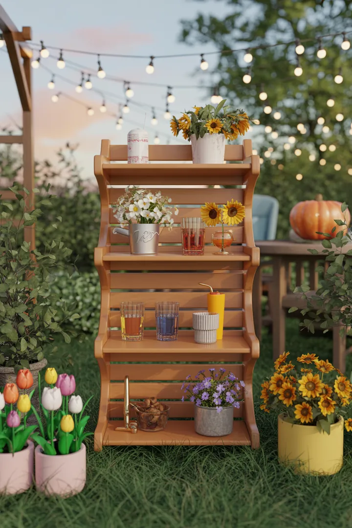 Im Frühling mit Pflanztöpfen, im Sommer mit Getränken, im Herbst mit Kürbissen und im Winter mit Lichterketten: Ein klappbares Holzregal passt sich jeder Saison an. Zusammengeklappt verschwindet es in der Ecke – und ist im nächsten Jahr wieder da.