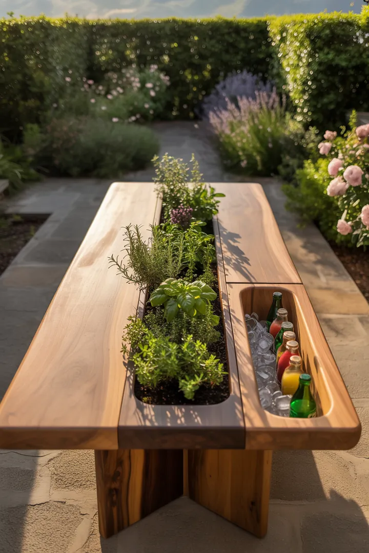 Kreative Köpfe bauen sich mehr als nur eine Platte mit Beinen: Ein eingelassener Pflanzstreifen für Kräuter mitten im Tisch oder ein Fach mit Eis und Getränken sorgt für echtes Staunen. Solche Ideen bringen nicht nur Funktion, sondern auch ein Lächeln auf die Gesichter Ihrer Gäste.