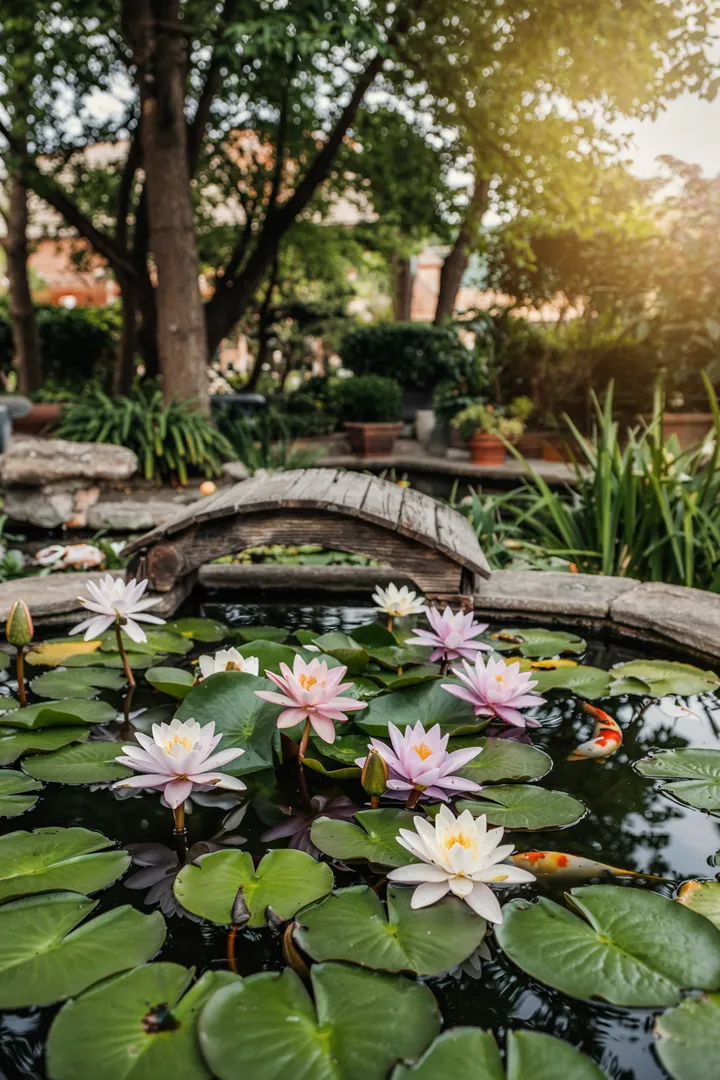 Für ein besonders charmantes Ambiente kannst du auch schwimmende Elemente integrieren. Kleine Holzflöße mit Kerzen oder Solarlampen sorgen abends für eine stimmungsvolle Beleuchtung und setzen deinen Teich bei Dunkelheit gekonnt in Szene. Achte darauf, dass die Materialien wasserfest sind, um Langlebigkeit zu garantieren.