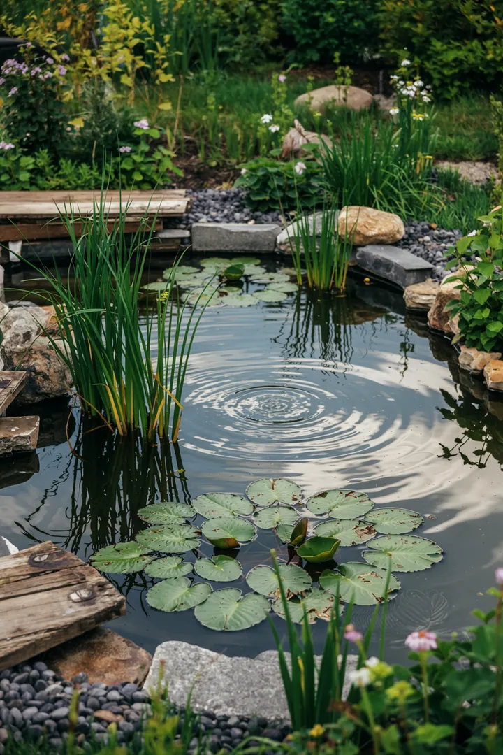 Vergiss nicht, dass ein Teich nicht nur für die Augen, sondern auch für die Ohren ein Erlebnis sein kann. Ein kleiner, plätschernder Brunnen oder ein sanfter Wasserfall sorgen für beruhigende Geräusche und bereichern die Atmosphäre deines Gartens.