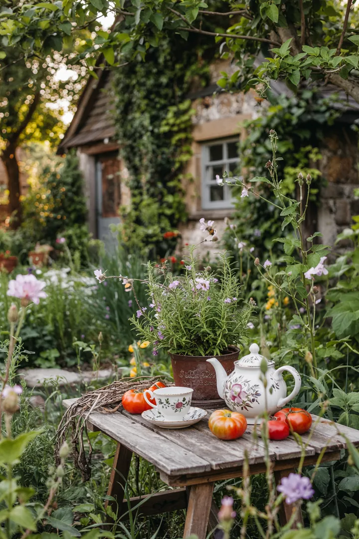 Neben den Zierpflanzen spielen Gartenkräuter eine wesentliche Rolle im Cottage Garten. Ein Kräuterbeet voller Rosmarin, Thymian und Salbei ist nicht nur optisch ansprechend, sondern bringt auch kulinarische Vielfalt in Ihre Küche. Diese Kräuter sind robust und passen perfekt in die romantische, etwas wilde Atmosphäre eines Cottage Gartens.