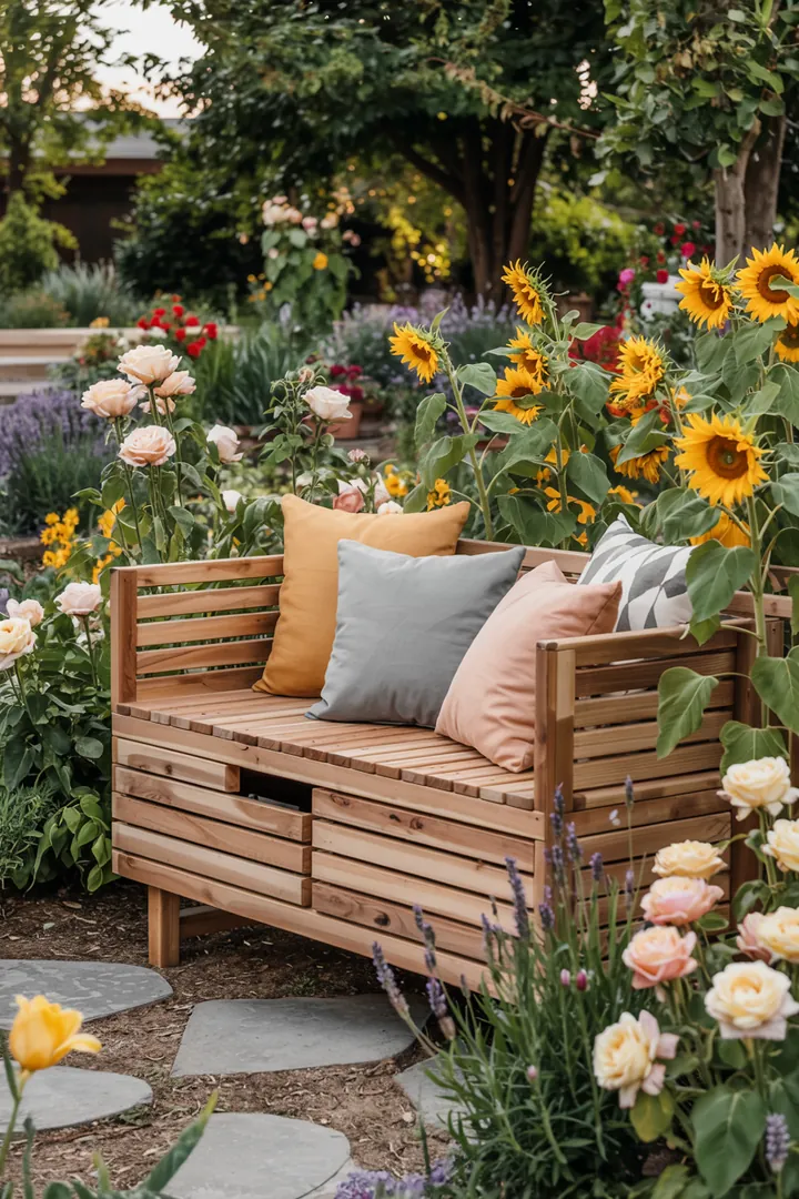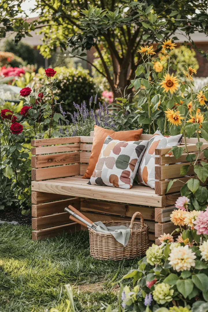 Wenn Sie handwerklich begabt sind, können Sie eine solche Bank auch selbst bauen. Ein DIY-Projekt, das nicht nur praktisch ist, sondern auch individuell gestaltet werden kann. 🔨 Wählen Sie Farben und Materialien, die zu Ihrem Gartenstil passen, und schaffen Sie so einen harmonischen Look. 🎨