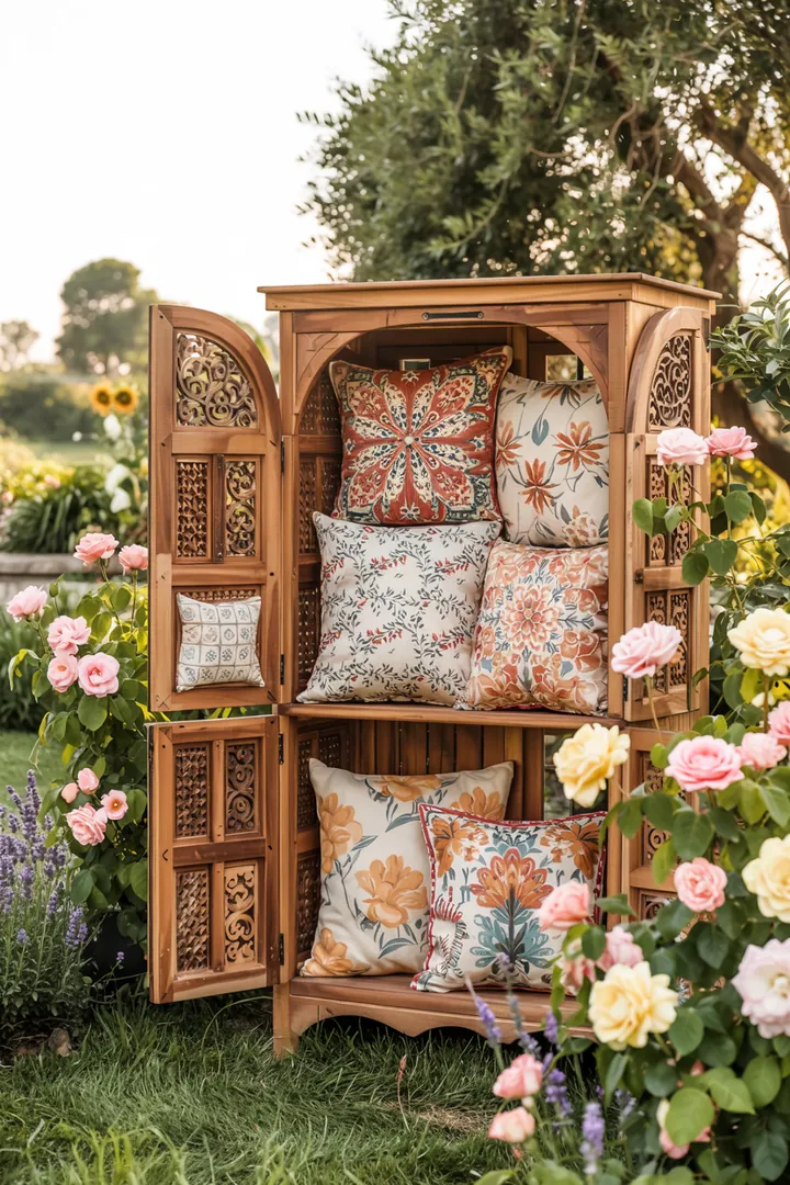 Planen Sie den Schrank so, dass er genügend Stauraum für all Ihre Outdoor-Kissen bietet. 📐 Ein durchdachtes Innenleben mit Regalen oder Fächern hilft, alles ordentlich und griffbereit zu halten. 🔍 Ein weiterer Tipp: Integrieren Sie Lüftungsschlitze, um Schimmelbildung zu vermeiden und die Kissen immer frisch zu halten. 🍃