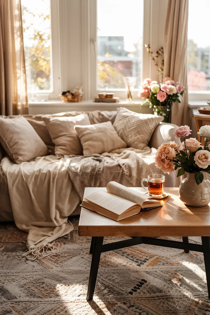 Ihr Wohnzimmer soll ein Ort der Entspannung und Gemütlichkeit sein, an dem Sie den Alltag hinter sich lassen können. 🛋️ Oftmals sind es die kleinen Details, die den größten Unterschied machen. Beginnen Sie mit einer durchdachten Gestaltung – ein gemütliches Wohnzimmer entsteht nicht zufällig. 🎨 Wählen Sie sanfte und warme Farben, um eine heimelige Atmosphäre zu schaffen. 🌈 Eine Kuschelecke mit weichen Kissen und Decken lädt zum Verweilen ein. 🛋️ Nutzen Sie das skandinavische Konzept von Hygge, um Ihrem Raum ein Gefühl von Geborgenheit zu verleihen. 🌿