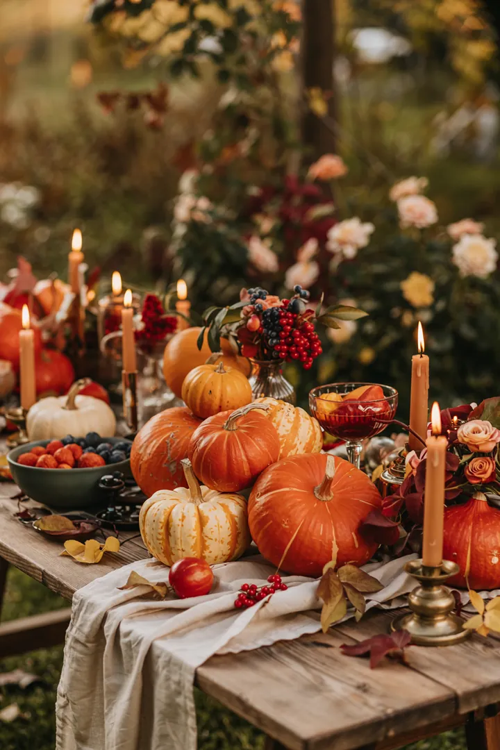 Vergessen Sie nicht die Beleuchtung – Kerzen und Lichterketten sind perfekt, um eine romantische Stimmung zu erzeugen. 🕯️ Wenn Sie den Außenbereich nutzen, denken Sie an wetterfeste Dekorationen, um unvorhersehbare Herbstwetterbedingungen zu überstehen. 🌧️