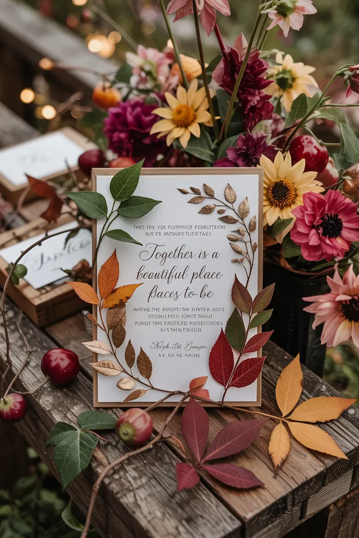 Vergessen Sie nicht, wichtige Details wie das Datum, den Ort und den Dresscode klar zu kommunizieren. 🗓️ Kombinieren Sie traditionelle Elemente mit modernen Akzenten, um eine persönliche Note zu schaffen. 🖋️ Eine herbstliche Hochzeitseinladung ist nicht nur ein Stück Papier, sondern der erste Eindruck, den Ihre Gäste von Ihrem besonderen Tag haben werden. 🌿