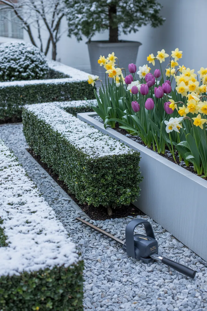 Holländischer Vorgarten: klare Linien, immergrün und viele Zwiebeln