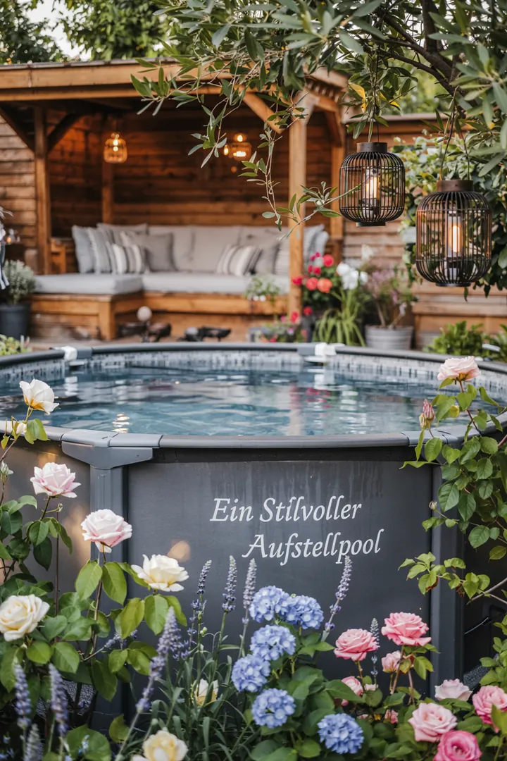 Vergessen Sie nicht, Beleuchtungselemente hinzuzufügen, um Ihren Pool auch abends in Szene zu setzen. 🌟 Eine gut durchdachte Umrandung lässt Ihren Aufstellpool nicht nur besser aussehen, sondern erhöht auch die Sicherheit und den Komfort. 💡