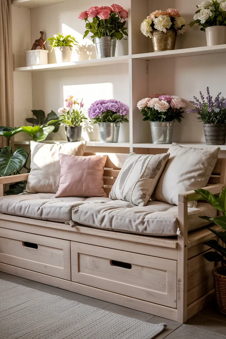 Sitzbänke mit Stauraum nutzen