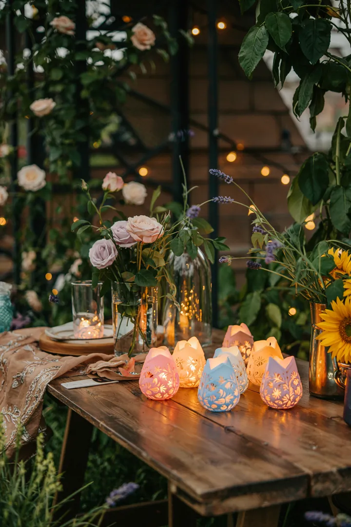 Sollte der Tisch im Freien stehen, achten Sie darauf, wetterfeste Lichterketten zu wählen. 🌦️ So sind Sie auf jede Wetterlage vorbereitet und können die lauen Sommerabende unbeschwert genießen. 🌅 Dies ist nicht nur praktisch, sondern setzt auch im Garten oder auf dem Balkon ein stilvolles Statement.