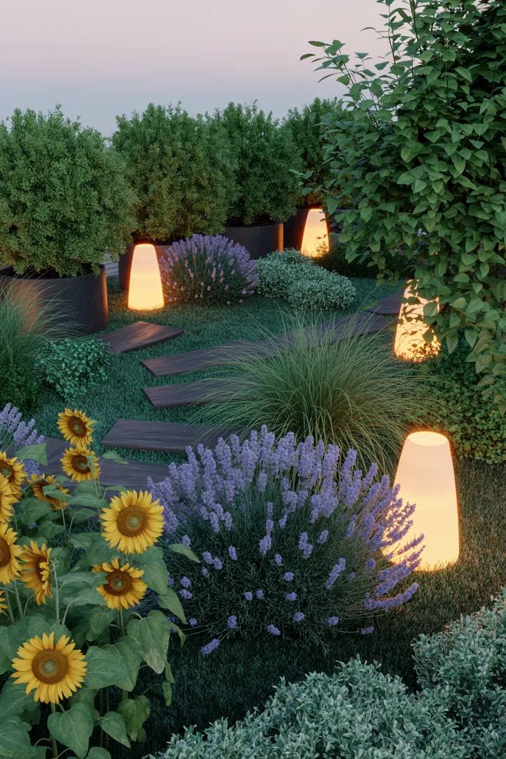 - Nutzen Sie Solarlampen, um den Blick abends auf genau dieses Objekt zu lenken.