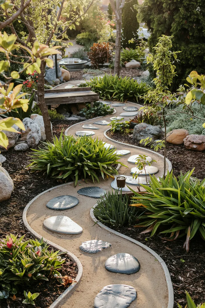 Die Kombination von Beton und Stein eröffnet unzählige Möglichkeiten. Ein Spielplatz für die Fantasie, ein Canvas für den kreativen Geist. Mit jedem Schritt auf diesen Wegen wird die Verbindung zur Erde spürbar. Eine Einladung, die Augen zu schließen und nur zu fühlen.