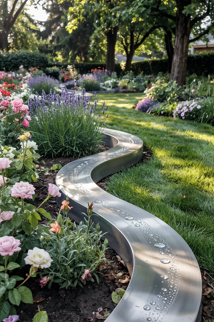 Stellen Sie sich vor, wie zarte Metallkanten die Beete einfassen, wie sie im Sonnenlicht glitzern, als wären sie aus flüssigem Silber.