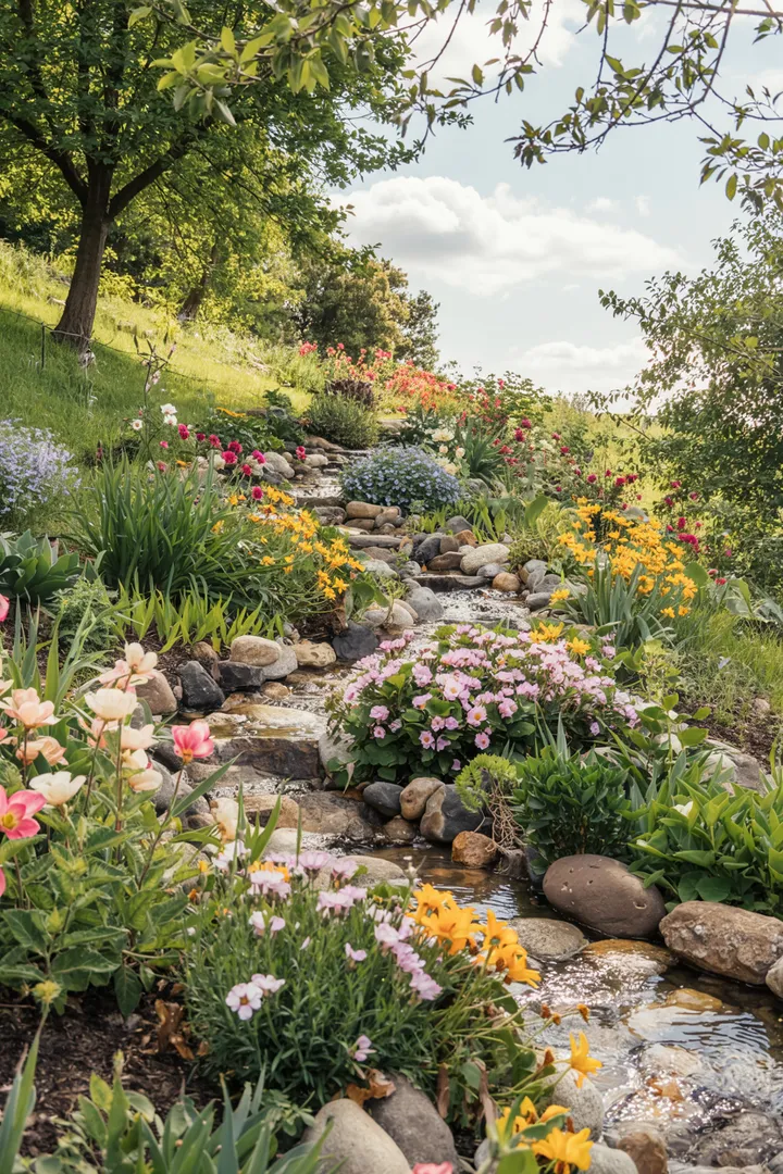 , flüstern die Blumen, die sich an die Steinkanten schmiegen. Sie sind die Künstler, die mit jedem Blütenblatt das Werk vervollständigen.