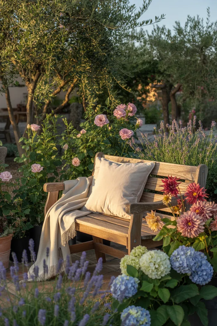Ob für Gäste oder das eigene Seelenleben – rustikale Gartenmöbel schaffen eine Atmosphäre des Willkommenseins . Kein Möbel ruft so sehr „Setz dich zu mir“ wie eine massive Holzbank mit Kissen und Decke. Sie laden ein zu langen Gesprächen, stillen Momenten oder einem Glas Wein bei Sonnenuntergang 🍷.
