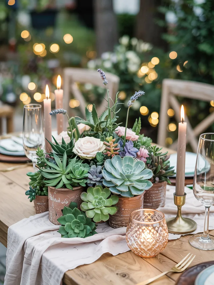 Sukkulenten Tischdeko für die Hochzeit