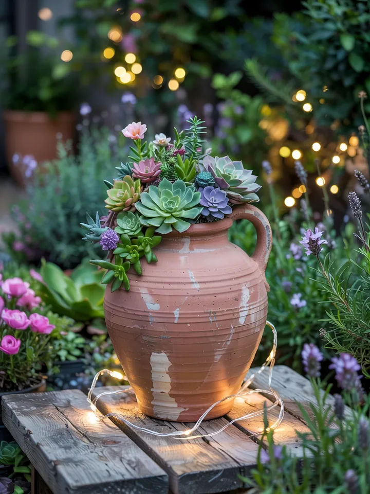 Sukkulenten in Amphoren arrangieren