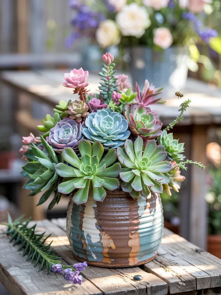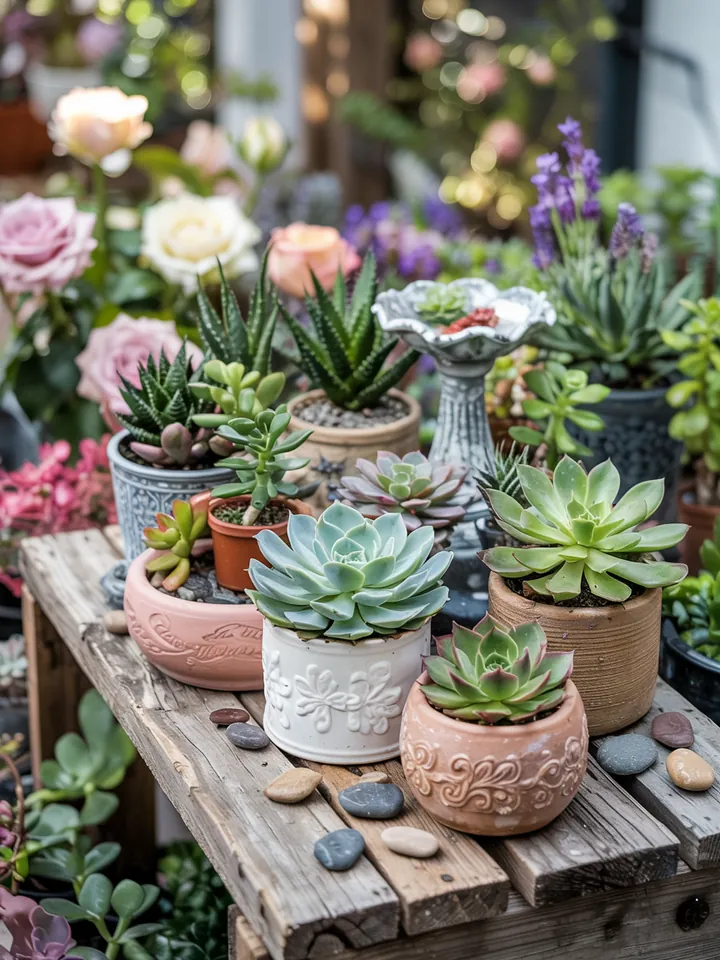 Wählen Sie verschiedene Sukkulentenarten wie Echeverien oder Sedum, die sich durch unterschiedliche Farben und Formen auszeichnen. Diese Vielfalt macht Ihren Feengarten besonders lebendig und spannend. 🌸👀 Platzieren Sie die Pflanzen mit genügend Abstand, damit sie Raum zum Wachsen haben. Ergänzen Sie den Garten mit kleinen Dekorationen wie Miniaturmöbeln oder kleinen Kieswegen, um das Märchenhafte zu unterstreichen. 🏡🧚♀️