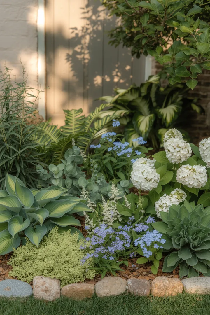 4. Kombinieren Sie Hortensien mit niedrigeren Halbschattenstauden, damit die Fläche nicht unten „nackt“ ist.