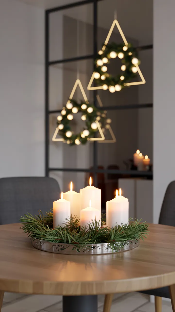 Setze auf minimalistische Deko-Elemente, die durch ihre schlichte Eleganz überzeugen. 🎇 Ein paar wohlplatzierte Kerzen auf einem Tablett, ein paar glänzende Kugeln und ein Hauch von Tannengrün – schon hast du eine moderne Weihnachtskulisse geschaffen! 🕯️🌿 Wer es etwas extravaganter mag, kann mit modernen Kunstobjekten oder geometrischen Formen Akzente setzen. 🎨🔺