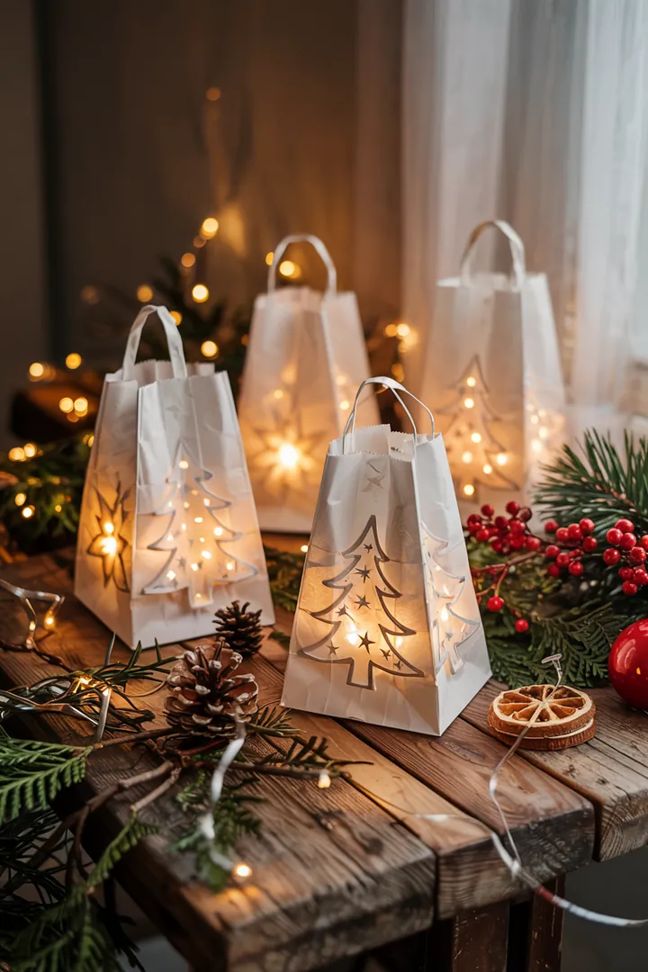 Eine besonders einfache Methode ist das Basteln mit Papiertüten. 🌟 Du kannst die Tüten bemalen oder mit weihnachtlichen Motiven bekleben. 🎨 Einfach ein Teelicht hineinsetzen und schon hast du ein stimmungsvolles Kerzenlicht. 🕯️ Diese DIY-Windlichter sind nicht nur schnell gemacht, sondern auch ein echter Hingucker auf jeder Fensterbank. 🪟